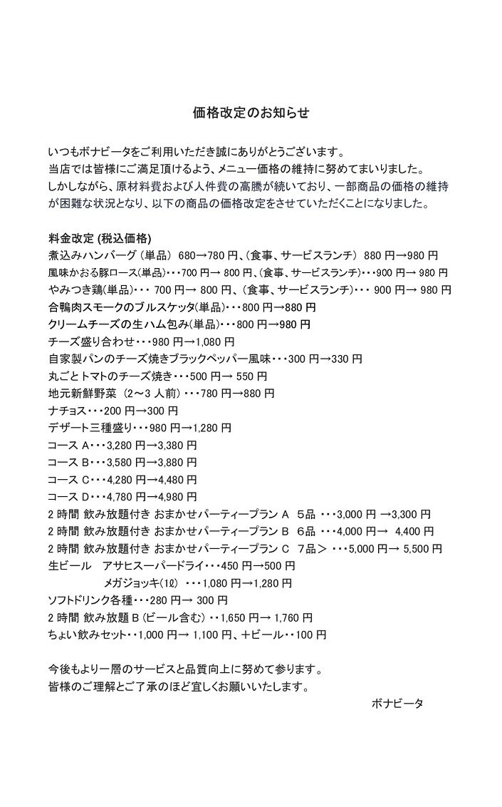昨今の原材料費や光熱費の高騰により、企業努力だけでは現状の価格を維持することが困難な状況となりました。誠に心苦しいお願いではございますが、2025年10月27(月)より、一部メニューの価格を改定させていただくこととなりました。