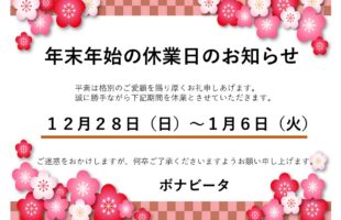 12.19(金)クリスマスフェス 12.27(土)年末フェス ※ご…